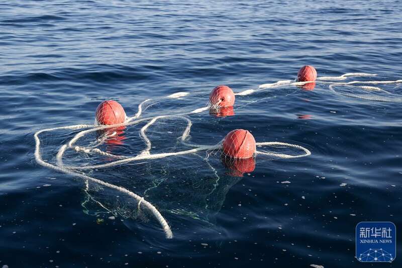 ↑这是仁爱礁及其附近海域散落的被菲方人员破坏的渔网(5月15日摄)。新华社记者 赵晨捷 摄