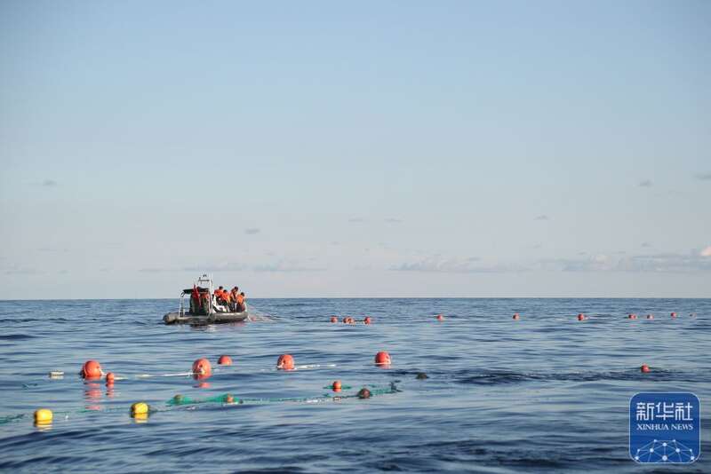 ↑5月15日,中国渔民回收被菲方人员破坏的渔网。新华社记者 赵晨捷 摄