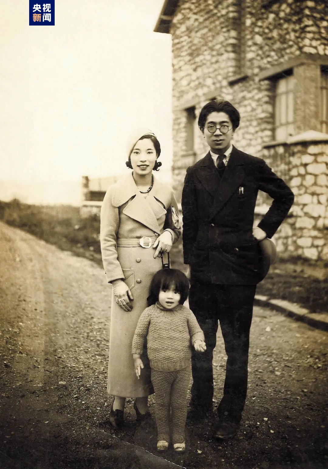 △常书鸿一家三口在法国里昂。照片中的小女孩为常沙娜