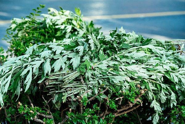 2024年6月6日,陕西省渭南市临渭区,端午节艾草和香包上市了。图为艾草。