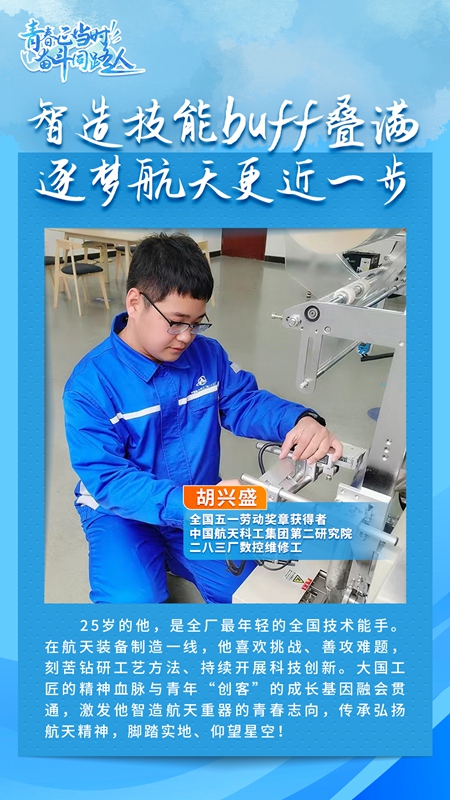 智造航天重器,筑梦航天强国,每当一个航天产品顺利交付,胡兴盛都心怀期许,“我们离天空更近了一步”,他说,“能把青春挥洒在航天事业里,是特别值得的事情”。