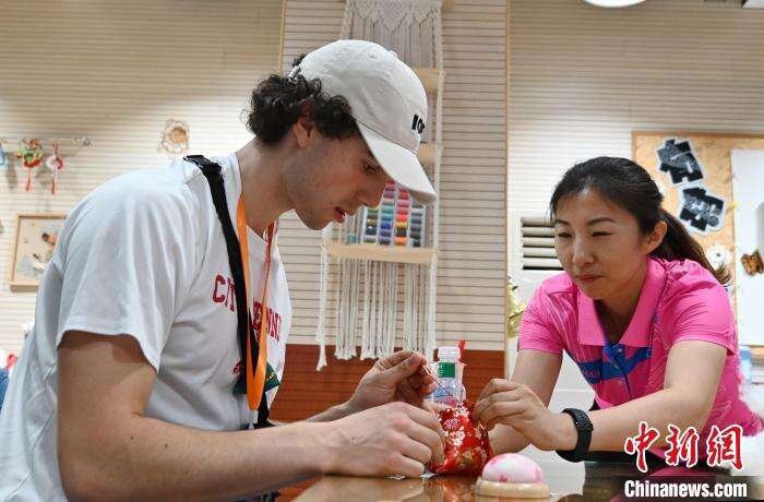 6月8日,河北省石家庄外国语学校,美国中学生体验做香包。在端午节来临之际,美国艾奥瓦州中学生“友谊传承”研学团师生51人在该校参加体验中国端午节相关活动,大家一同包粽子、做香包……感受中国传统文化。翟羽佳 摄