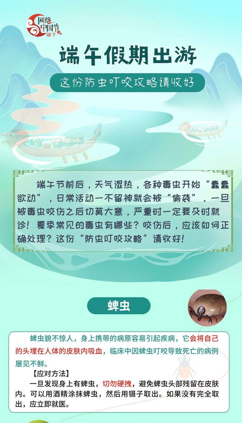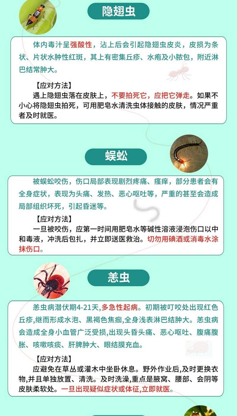 端午节前后,天气湿热,各种毒虫开始“蠢蠢欲动”,日常活动一不留神就会被“偷袭”。一旦被毒虫咬伤之后切莫大意,严重时一定要及时就诊!夏季常见的毒虫有哪些?咬伤后,应该如何正确处理?这份“防虫叮咬攻略”请收好!