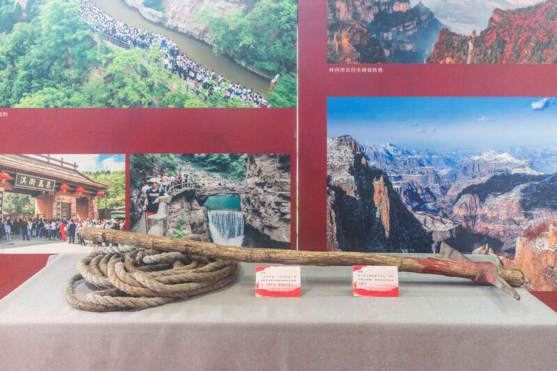 现场展示的洋镐与麻绳。陈宇龙/摄