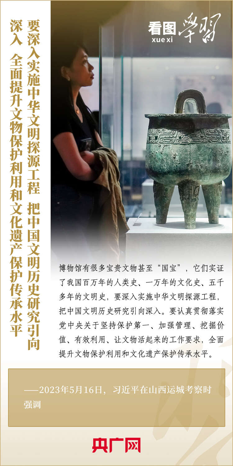 文化兴则国运兴,文化强则民族强。党的十八大以来,习近平总书记对中华优秀传统文化的传承发展作出全面系统深入阐述,在赴各地调研时考察当地历史文化资源保护工作,并就文化遗产保护传承作出重要指示,叮嘱要把“中华民族的基因和血脉”好好传下去。6月8日是文化和自然遗产日,今年的主题是“保护文物 传承文明”。一起来学习!
