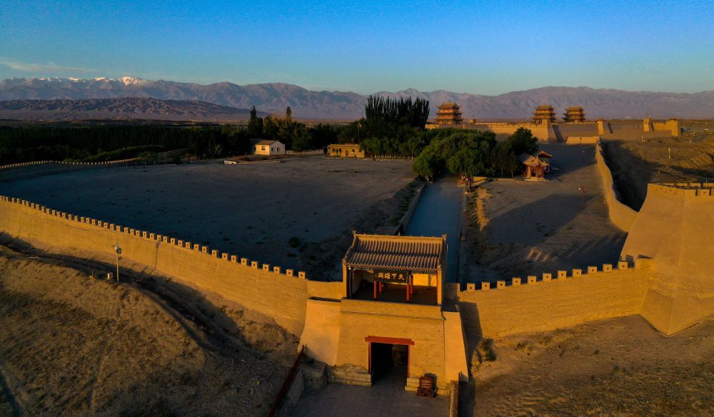 2023年7月19日拍摄的祁连雪山与嘉峪关关城。新华社记者 郎兵兵 摄