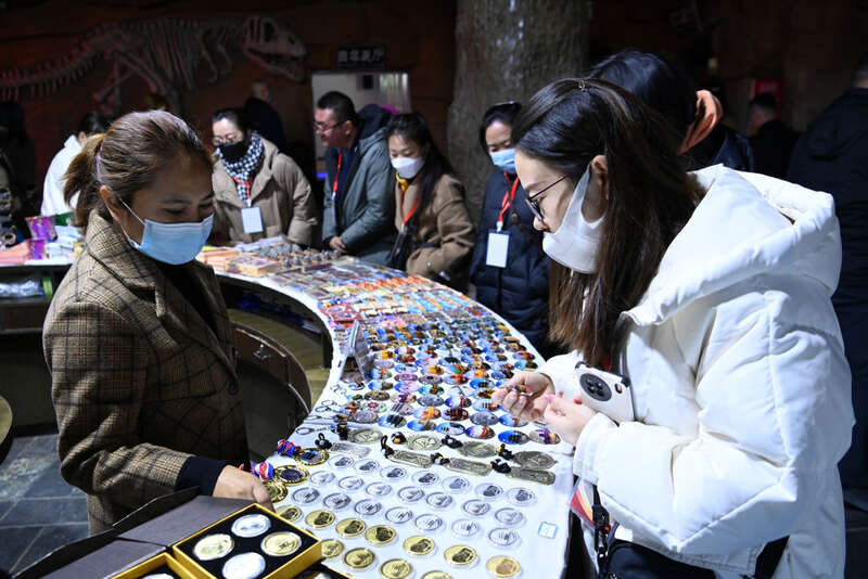 游客在甘肃省嘉峪关长城第一墩景区选购文创产品(2023年3月4日摄)。新华社记者 范培珅 摄