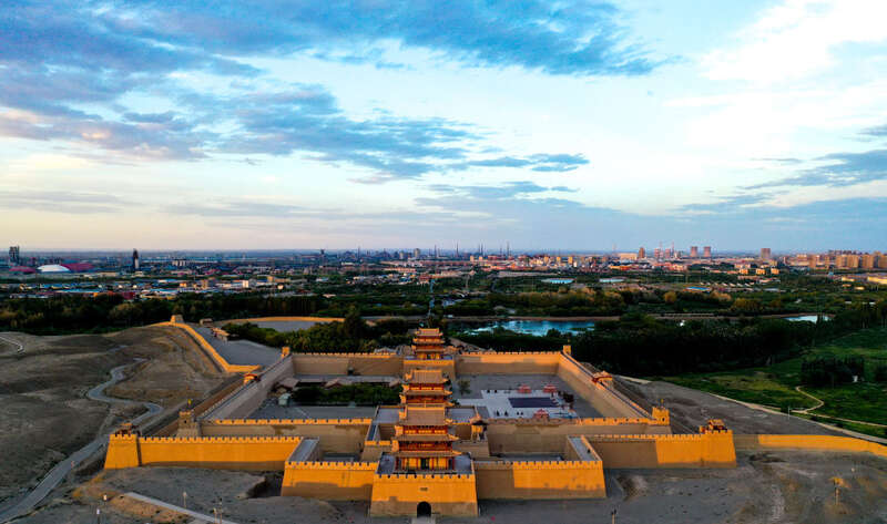 位于甘肃省嘉峪关市的嘉峪关关城(2023年7月14日摄,无人机照片)。新华社记者 方欣 摄