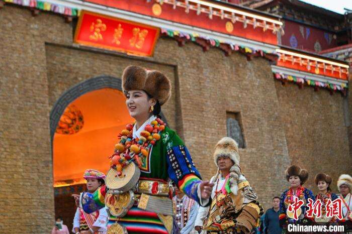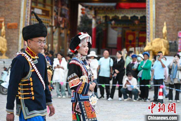 6月9日,模特展示民族服饰。当日,2024年迪庆·香格里拉赛马会民族服装秀在云南省迪庆藏族自治州香格里拉市独克宗古城上演。此次服装秀借用独克宗古城为天然秀场,石板街道为 T 台,古城建筑为背景,展示民族服饰文化魅力。李嘉娴 摄