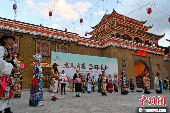6月9日,模特集中展示民族服饰。当日,2024年迪庆·香格里拉赛马会民族服装秀在云南省迪庆藏族自治州香格里拉市独克宗古城上演。此次服装秀借用独克宗古城为天然秀场,石板街道为 T 台,古城建筑为背景,展示民族服饰文化魅力。李嘉娴 摄