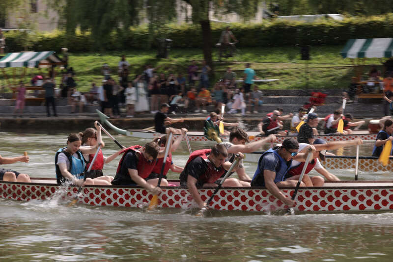 在斯洛文尼亚首都卢布尔雅那市中心的卢布尔雅尼察河上,8日举行了一场中国传统龙舟赛。13支队伍共约130人参加比赛,其中还包括来自克罗地亚、意大利和捷克的参赛队伍。