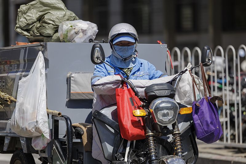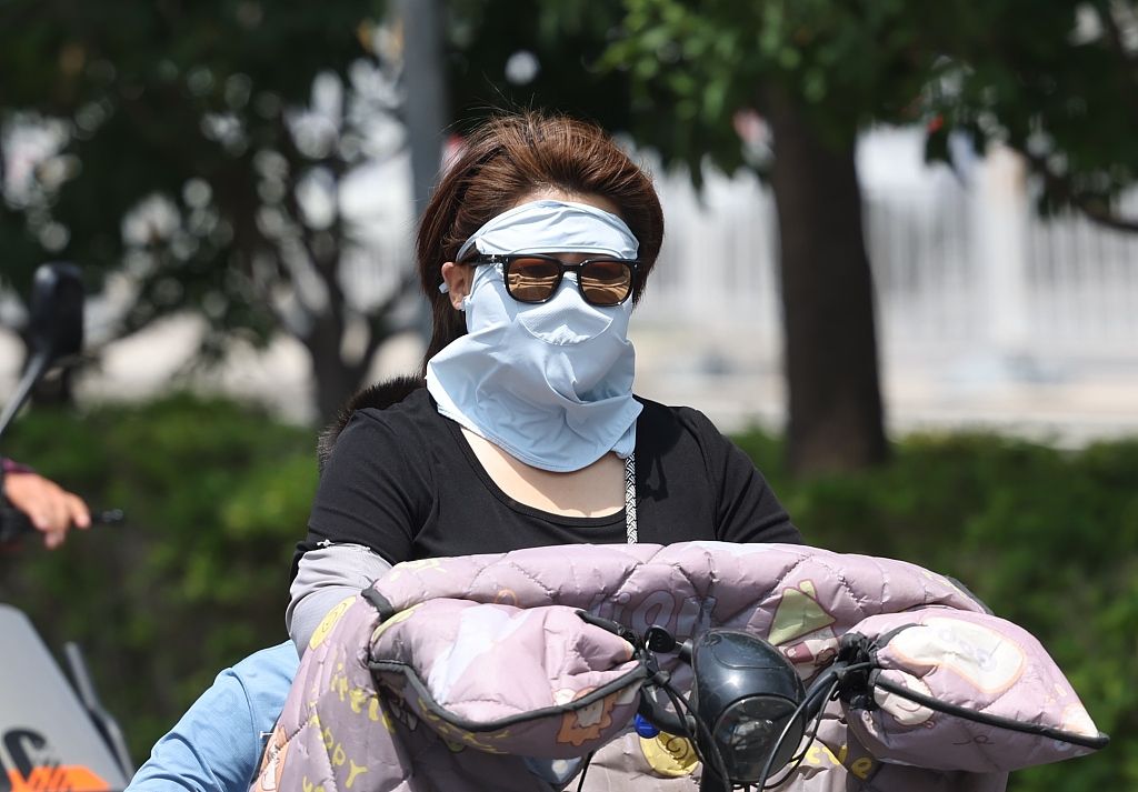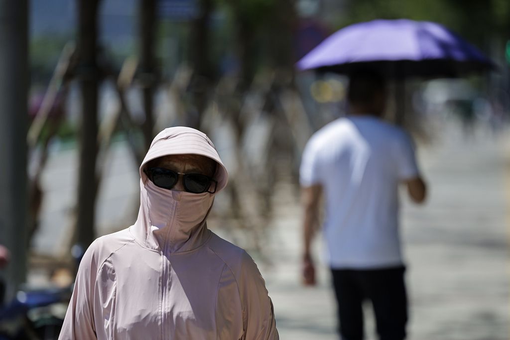 2024年6月9日-6月10日,北京,行人“全副武装”防晒外出。