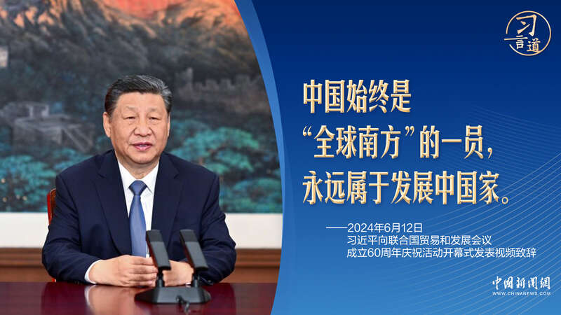 6月12日,国家主席习近平向联合国贸易和发展会议成立60周年庆祝活动开幕式发表视频致辞,他再次强调了中国始终是“全球南方”一员。