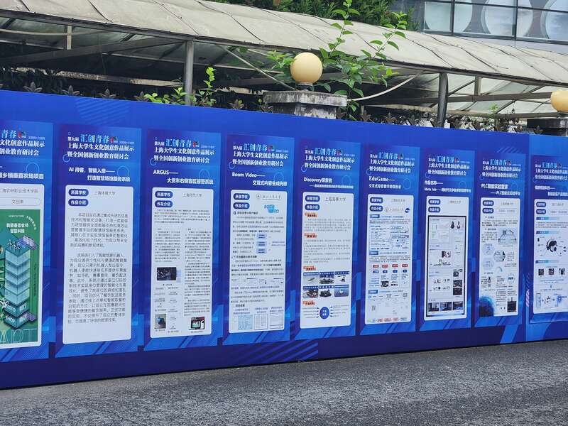 上海财大校园里随处可见“汇创青春”活动展板。中青报·中青网记者 王烨捷/摄