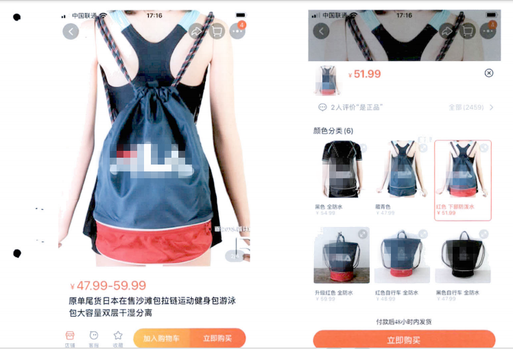在讯问过程中,柯某供述:“由于每次生产出来都有剩余,这些东西放着也是浪费,所以我们决定通过网店销售出去,以此来赚点外快。” 柯某公司代生产的大量该运动品牌包中,质检合格的产品经过包装后出口海外,由海外公司在当地销售,而瑕疵品则被退回,成为柯某所称的“尾单”。在柯某经营的网店中,标写“日单尾货”“日单热销”等字样,实际卖的都是质检不合格的产品,价格一般在30至50元不等。