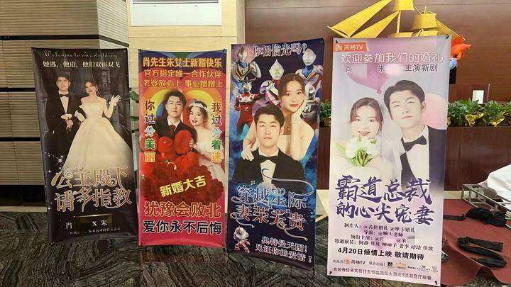 再如小小走红了一把的“霸总风”土味婚庆海报,一反高端唯美路线,新郎新娘合影上是土味的文案、夸张的字体、非主流的排版,像一本古早的言情小说,出现在婚礼现场。“霸道总裁爱上我”的夸张剧情,长辈看不懂,年轻人却直乐呵。