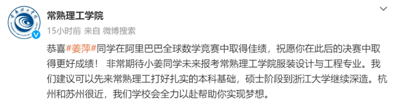 中国青年报(ID:zqbcyol 整理:张小松)综合:@荔枝新闻、浙江大学、常熟理工学院、新京报等。