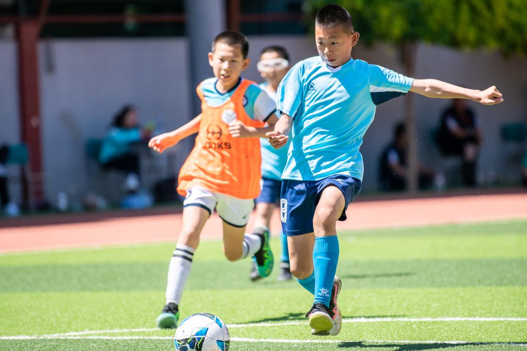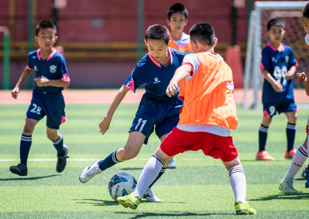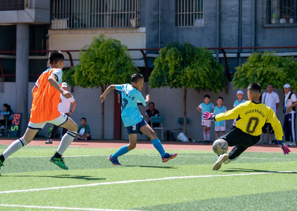 2024年6月16日,小球员在呼和浩特市玉泉区“区长杯”校园足球联赛比赛中。