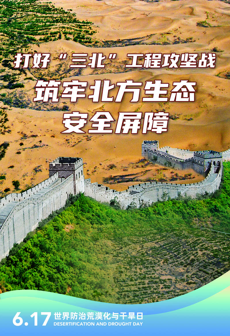 6月17日,记者从国家林业和草原局获悉,今天是第30个世界防治荒漠化与干旱日,我国的宣传主题为“打好‘三北’工程攻坚战 筑牢北方生态安全屏障”。党的十八大以来,我国持续加大“三北”等重点生态工程建设力度,推进科学化、规模化治沙,完成沙化土地治理任务3.31亿亩,封禁保护面积2708万亩,53%的可治理沙化土地得到有效治理。