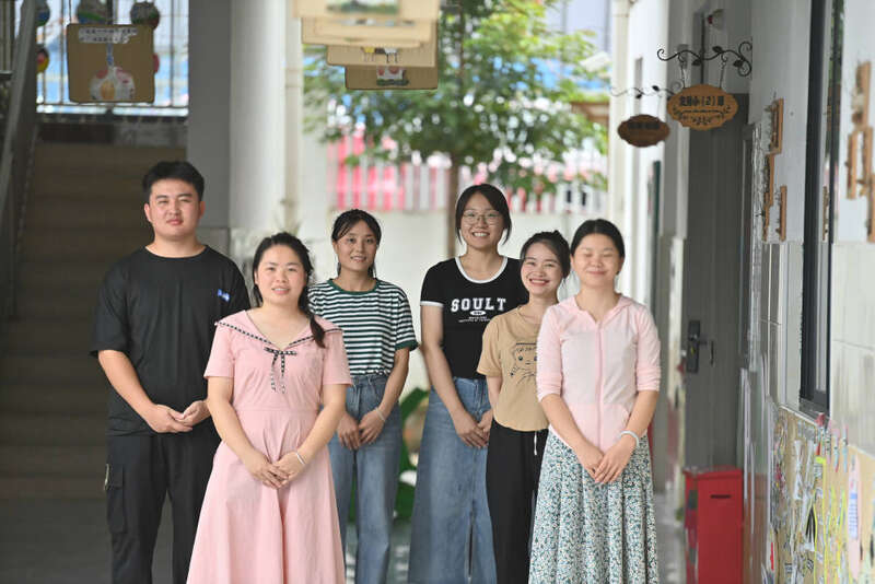 这是广西壮族自治区百色市乐业县新化镇百坭村文秀幼儿园部分“90后”“00后”老师(6月11日摄)。新华社记者 黄孝邦 摄