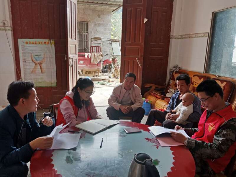 这是黄文秀(左二)生前下屯访问贫困户的资料照片。新华社发