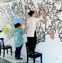 早在2011年,许村国际艺术公社成立,团队除了兴建美术馆、文化广场、书屋等公共文化空间,还举办了“许村国际艺术节”,邀请国内外艺术家和当地村民一起进行在地创作。渠岩说:“乡绘,更是相会,希望能够让多元的绘画艺术在许村相遇。”在“修旧如旧”的理念影响下,村民不再将旧房推倒重建,而是在保留其原有特征的基础上进行修复性改造。几支笔,一面墙,80后艺术家文娜邀请乡亲们一起画壁画,气氛一下子热络起来。根据许村传统神话故事创作的《浣衣图》烂漫而富有想象力,洒脱的线条描绘出乡间风俗,也寄托着村民们的美好祈盼。乡绘很快被村民们接纳,“这里的影壁还空着呢,就盼着画家们过来给画画。”如今,艺术节已深深嵌入地方文化与乡村生活中,村民们都说,艺术节就是自己的节日。