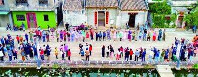 在青田,艺术让这个村落慢慢苏醒,也让青田人对家乡充满骄傲与自豪。除了青田水乡艺术季、“上善若水——艺术龙舟行动”等活动,一场“走田”主题时装秀,更是点燃了村民的热情。穿着设计师以乡村生产生活为灵感设计的服装,佩戴着自己亲手制作的香云纱配饰,道具是平日田间劳作的老物什,村民“模特”们虽面露羞涩,但走在自己最熟悉的乡野,走出的是自信、坚定的步伐,仿佛在告诉每一个人,这就是我们的生活,我们的时尚。