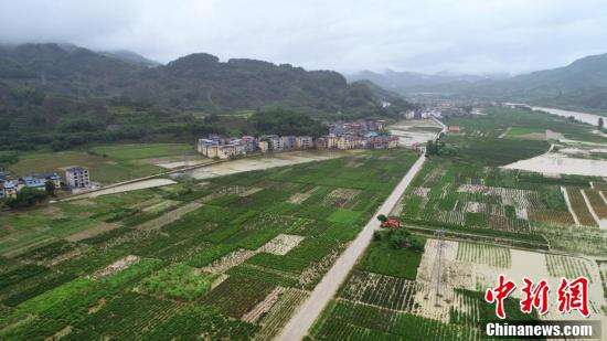 6月17日,在位于福建省南平政和县东平镇范屯村的省道302线上洪水退去,原来被淹盖的农田、道路呈现出来。连日来,强降雨落区在福建省来回摆动,龙岩市武平县等地遭遇破历史极值纪录的降雨,龙岩、南平、三明、宁德等市出现不同程度灾情险情,造成多人死亡、失踪。(无人机照片)