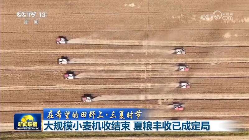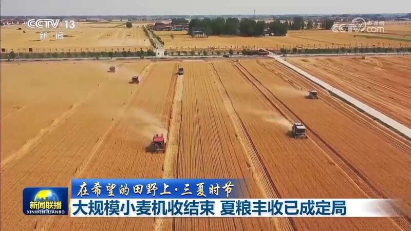央视网消息(新闻联播):记者从农业农村部了解到,全国大规模小麦机收自5月27日全面展开,截至今天(6月18日),西南、黄淮海等麦收重点地区收获基本完成。这也意味着“三夏”大规模小麦机收结束,夏粮丰收已成定局。
