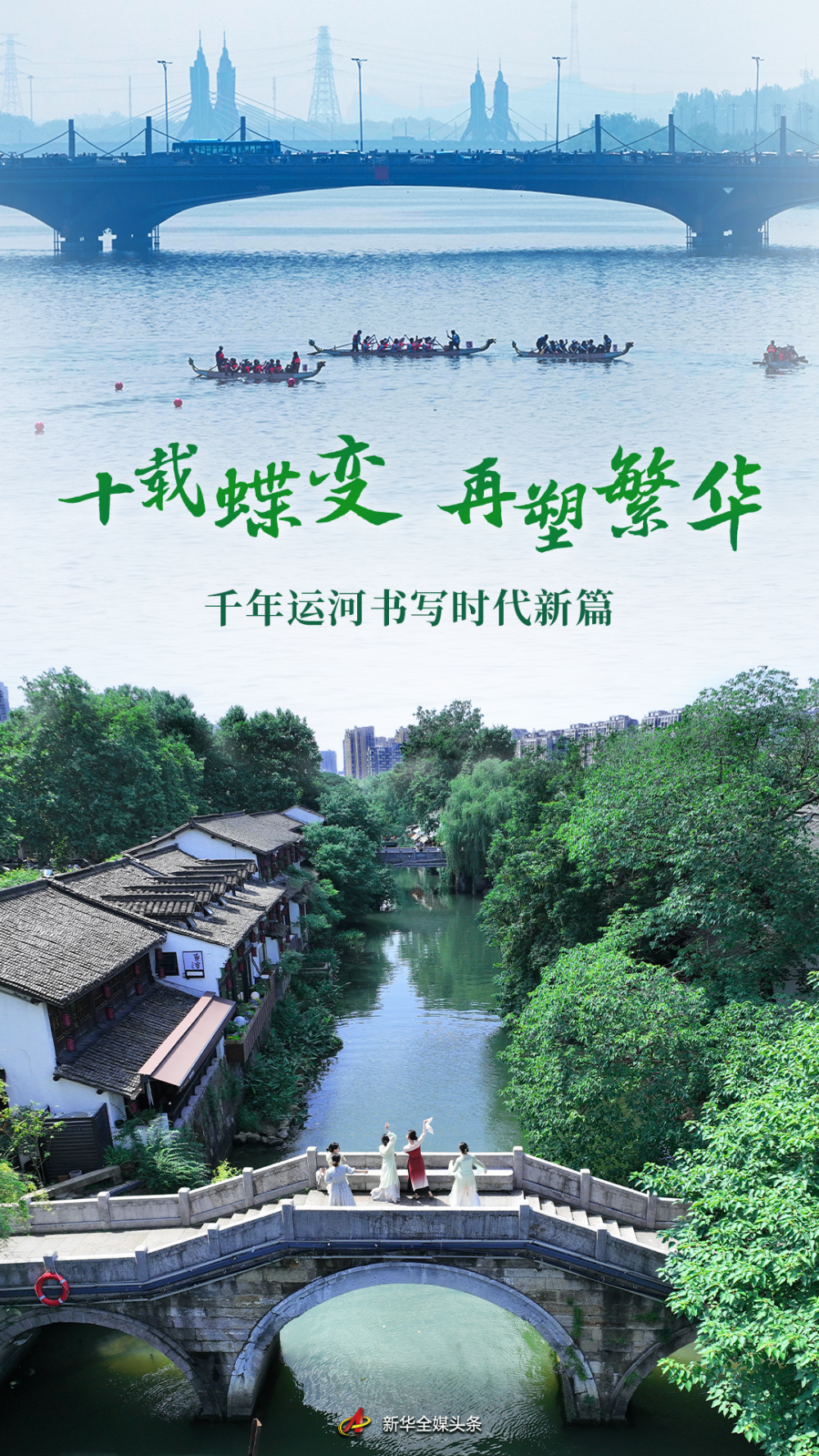 申遗成功十年间,沿岸各地坚持保护、传承和发展的宗旨,造就生机勃勃的景观河、生态河、人文河,让古老的大运河真正成为“人民的运河”。
