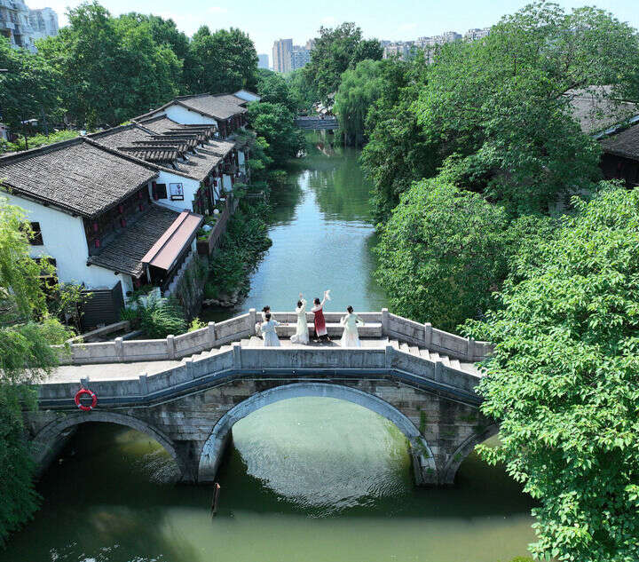 仲夏时节,碧波荡漾,杨柳拂岸,位于京杭运河畔的杭州桥西历史文化街区里,游客如织。
