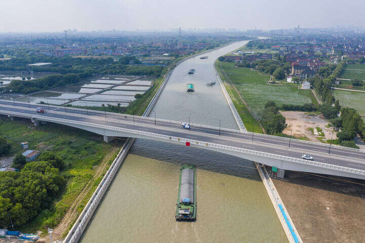 在杭州市临平区东湖村,“新运河”与“老运河”在此交汇,一艘艘货船正转入“新运河”——这便是去年7月开通的京杭运河杭州段二通道。据杭州市交通运输局统计,近一年来有2.6万多艘次船舶通过运河二通道,其中重载船舶货运量达到1700万吨,既缓解了大运河杭州市区河段的交通压力,也有利于保护杭州市区河段的诸多遗产点。