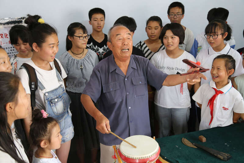 2017年6月17日,在山东沾化民众鼓书院,大鼓艺人兰尊侠在表演节目。