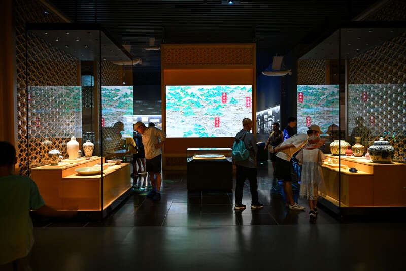 2024年4月23日,游客在江苏扬州中国大运河博物馆参观游览。