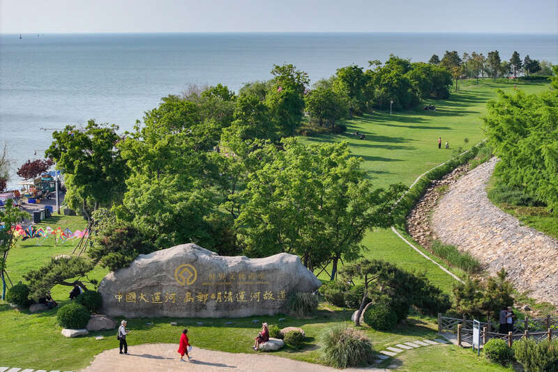 2024年4月26日拍摄的江苏扬州高邮市的明清运河故道,现已变身为城市休闲公园。