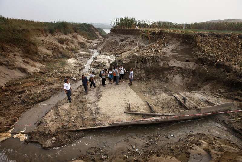 2013年9月,在河南洛阳首阳山镇洛河滩里,暴雨冲出的水沟内发现一艘深埋地面4米以下的木质古船。沉船所处的位置距离现在的洛河河道不足50米,船身最宽处3.2米,总长度大约17米。根据史料记载,这艘沉船所处的位置,正是隋唐大运河漕渠的故道。