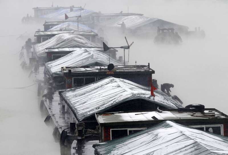 1997年, 浙江余杭老船民钱盛祥(左二)一家四代住在船上,古老的大运河成为他们一家生活的唯一指靠。