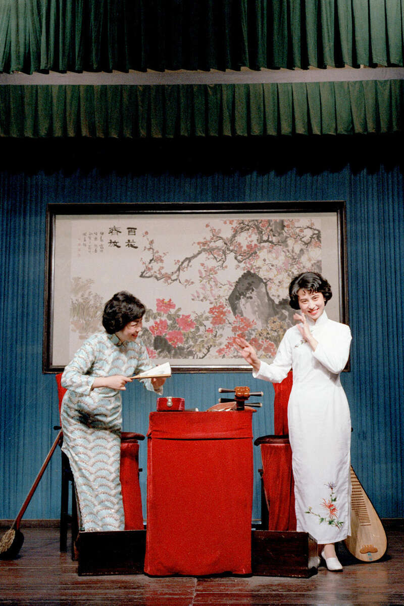 1985年,在江苏无锡大运河段上,外国游客在游船上品尝太湖船菜。太湖船菜的菜肴都是太湖盛产的鱼蟹河鲜,味美可口,别具一格。