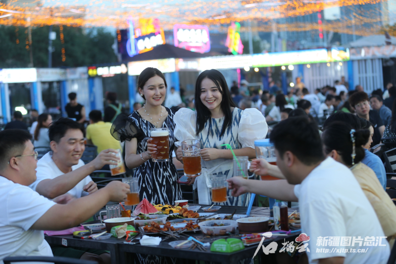 6月18日,市民在乌鲁木齐华凌夜市品尝美食。 石榴云/新疆日报记者 李雄心摄