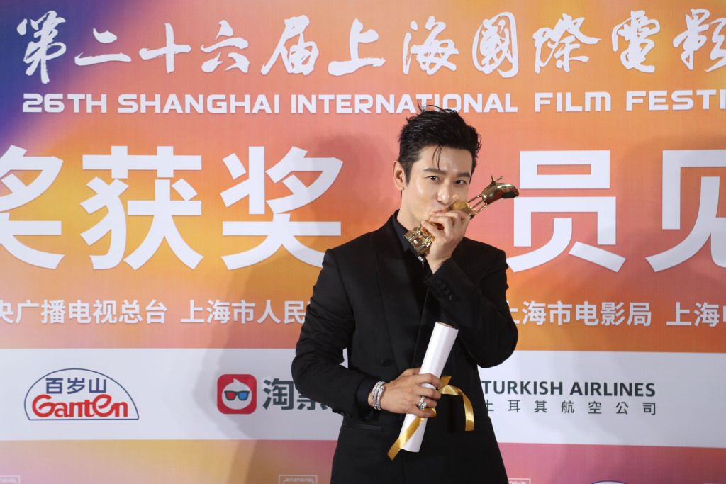 6月22日晚,第26届上海国际电影节金爵奖颁奖典礼在上海大剧院举行。演员黄晓明凭借影片《阳光俱乐部》(中国)中增重30多斤的表演,获得金爵影帝。中新社记者 张亨伟摄