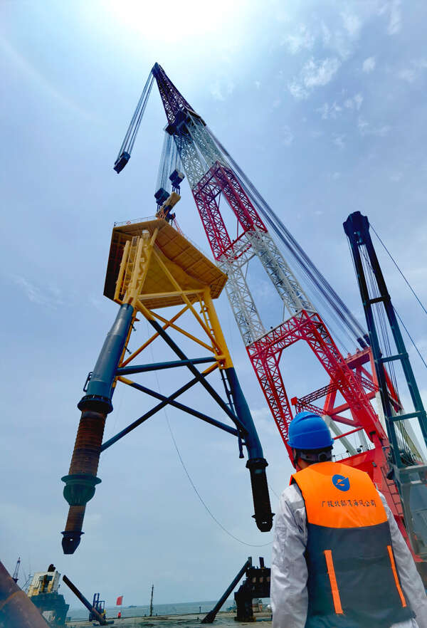 海上风电建设面临着浪涌风急、海水盐雾腐蚀、台风破坏等一系列挑战,再加上北部湾海域地质构造为典型的岩基海床,海域岩石硬度高,打桩难度大,进一步增加了施工和协调的难度。