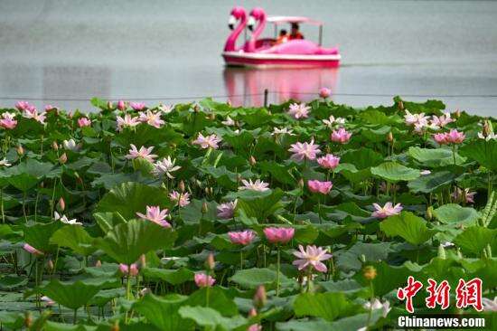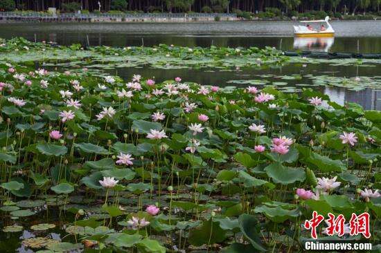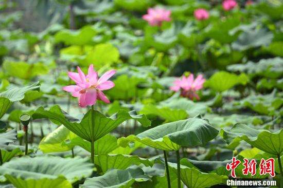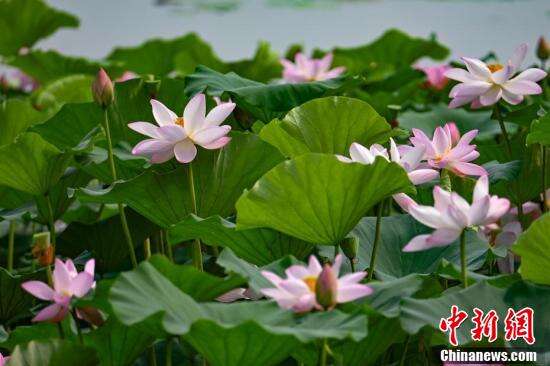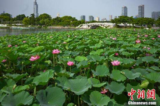 6月24日,江苏南京,玄武湖公园盛开的荷花点缀在绿叶之间,荷叶田田夏意浓。