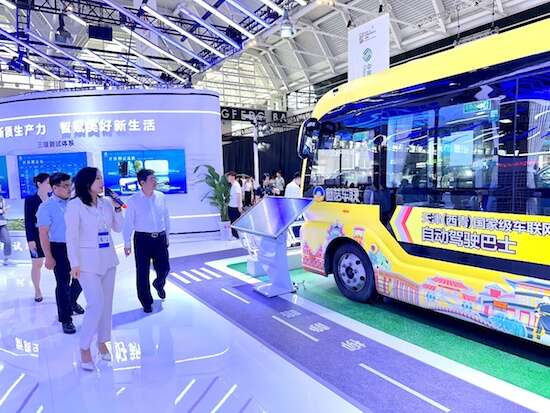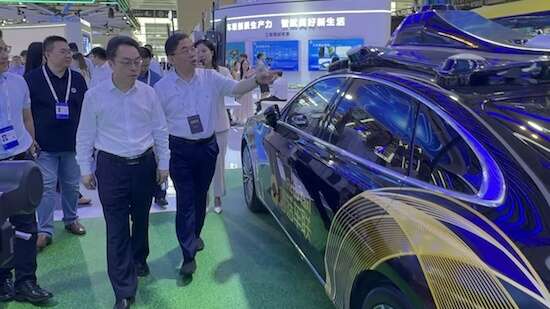 在展台,天津市人大常委会主任、党组书记喻云林,天津市人民政府党组成员、副市长朱鹏分别听取工作人员关于蘑菇车联在技术研发、产品迭代、落地应用方面的汇报,对公司近年来取得的成绩表示认可,对自动驾驶巴士、自动驾驶乘用车等自主研发产品给予高度评价