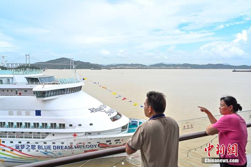 停靠在南沙国际邮轮母港内的“蓝梦之歌”号邮轮吸引市民。