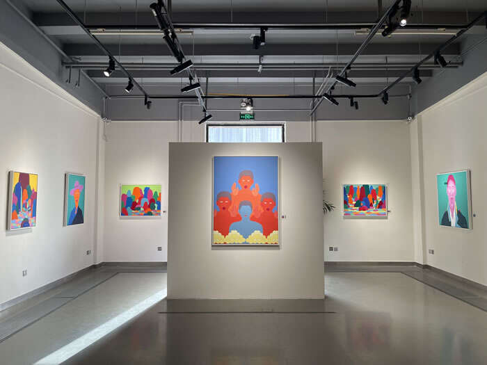 创作于2014年的《云》系列是画家初显个人风格的作品。艺术家以自身形象来塑造画面中的人物,此时的创作多用具象化的文化符号来进行自我表达。《村庄》和《寺院》系列作品则与艺术家成长环境相关,同时也继续关注人物形象的描绘。这个系列的画风逐渐从具象走向抽象。