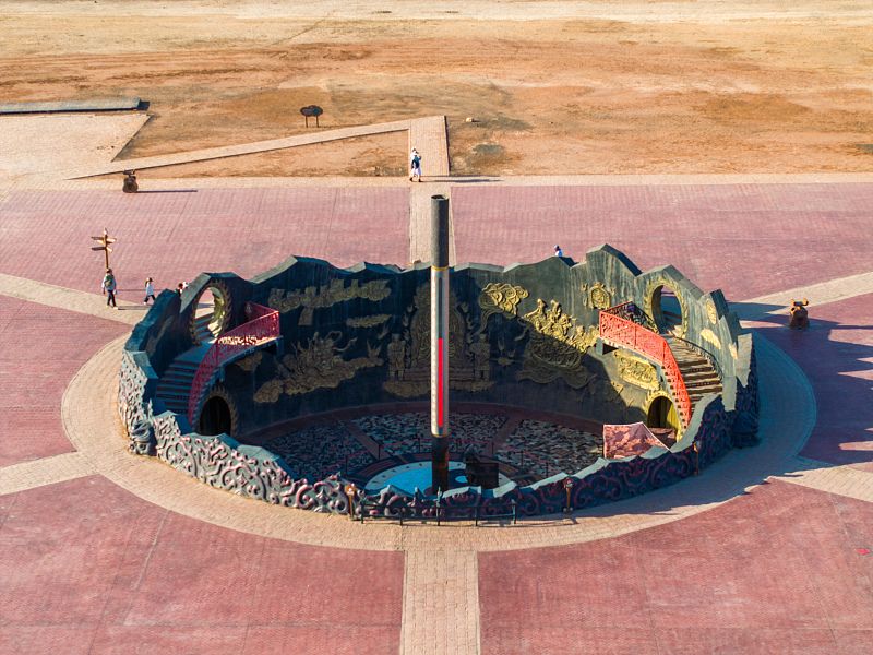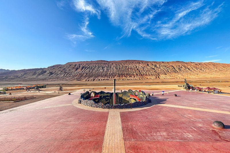 6月24日,新疆吐鲁番市,火焰山迎来高温天气,巨型温度计显示温度超过60摄氏度。