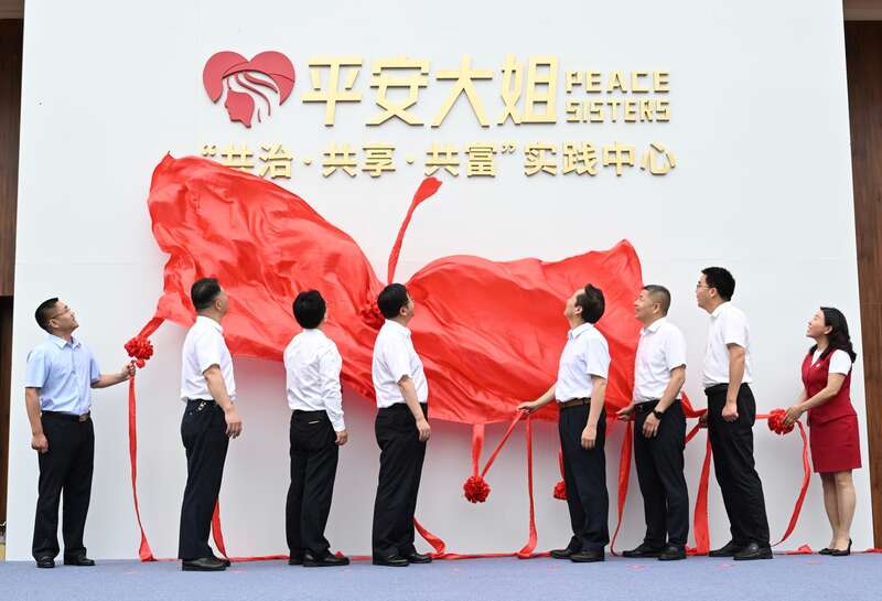 浙江省委社会工作部和湖州市、吴兴区等有关负责人为平安大姐“共治·共享·共富”实践中心揭牌。 主办方 供图