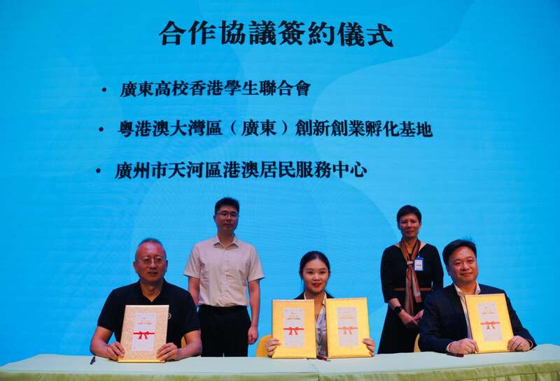 粤港联与粤港澳大湾区(广东)创新创业孵化基地、广州市天河区港澳居民服务中心合作协议签约仪式。黄艺茵/摄