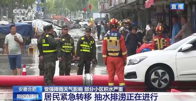 总台记者 周婧雨:我现在位于合肥市瑶海区的玉兰苑小区,这个小区的地势低洼,和正常地面约有1.2-1.3米的高度差。昨晚,合肥市出现了大到暴雨,玉兰苑小区附近的一条河流出现水位上涨、河水倒灌,导致地势低洼的玉兰苑小区出现严重积水,昨天当地组织了很多抢险救援人员及时赶到现场。