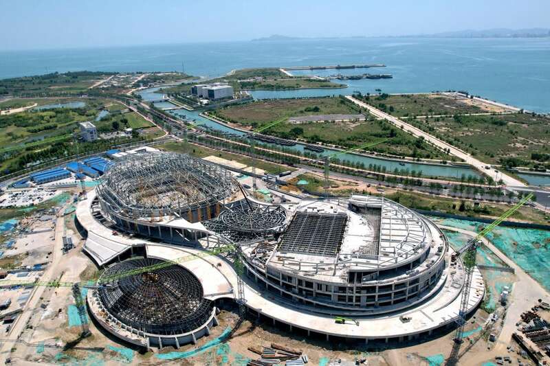 中国青年报客户端讯(满在勇 刘云豪 王寒霖 中青报•中青网记者 宋宝颖)由中铁十局投资公司投资建设的山东烟台八角湾国际体育中心主体钢结构工程日前封顶,标志着烟台八角湾国际体育中心主体建设完成。